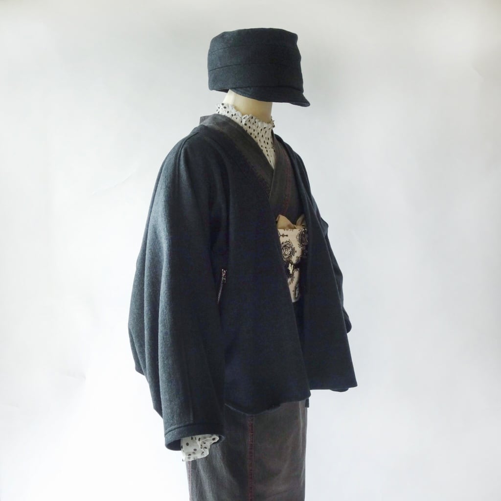 人気カラーの高級圧縮ニット素材で仕立てた、和洋兼用のカジュアル羽織 「MANTA(マンタ)」着物に自然と馴染みながらも、洋服にも合わせやすいミニマルなシルエットが特徴です。